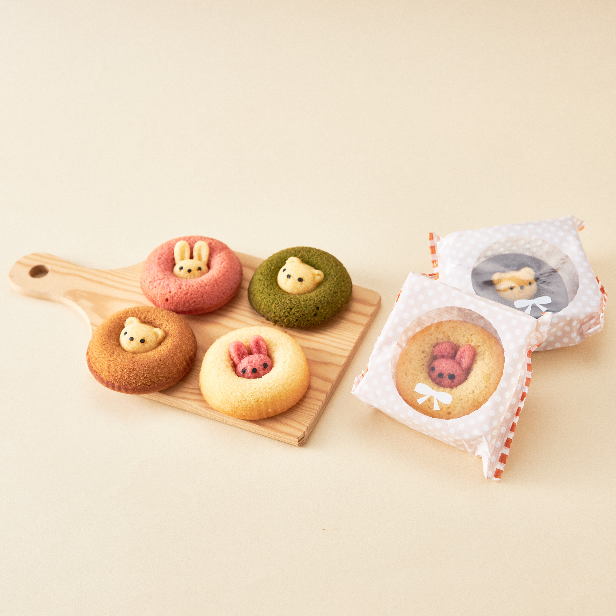子供ウケバツグン!くまとうさぎがひょっこりと顔をのぞかせている、とってもキュートな焼きドーナツです。揚げずに焼いたドーナツは、少しヘルシーでふんわりとした仕上がり。